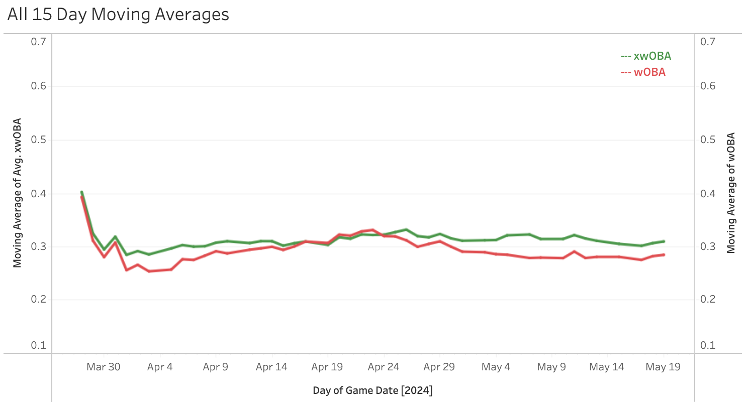 Many of Toronto’s best hitters are underperforming. Still, Bichette and Springer have posted an expected wOBA of around .300 across 350 PAs, which isn’t precisely star-level stuff.