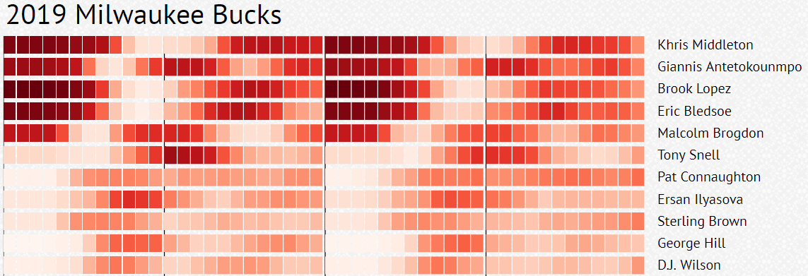 That has continued even in the playoffs. Mike Budenholzer has taken Giannis and Eric Bledsoe out in the first quarter earlier than the other starters, staggering them with Khris Middleton and Brook Lopez.