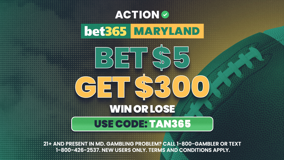 Must be 21+ and present in MD. Gambling Problem? Call 1-800-GAMBLER or Text 1-800-426-2537. Bet $5 and Get $300 in Bonus Bets at bet365. Deposit required. Bonus Bets winnings are added to Bonus Bets balance. Bonus Bet wager excluded from returns. T&Cs, time limits and exclusions apply. Registration required.