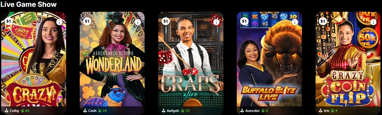 Game Shows are becoming the top trending option for live dealer fans to try at DraftKings Casino. All these games feature a unique game show host and objective for players. Look for top game shows like Crazy Time, Adventures Beyond Wonderland, Crazy Coin Flip, Dream Catcher, Lightning Dice, and more! All these game shows have a fun chat feature.