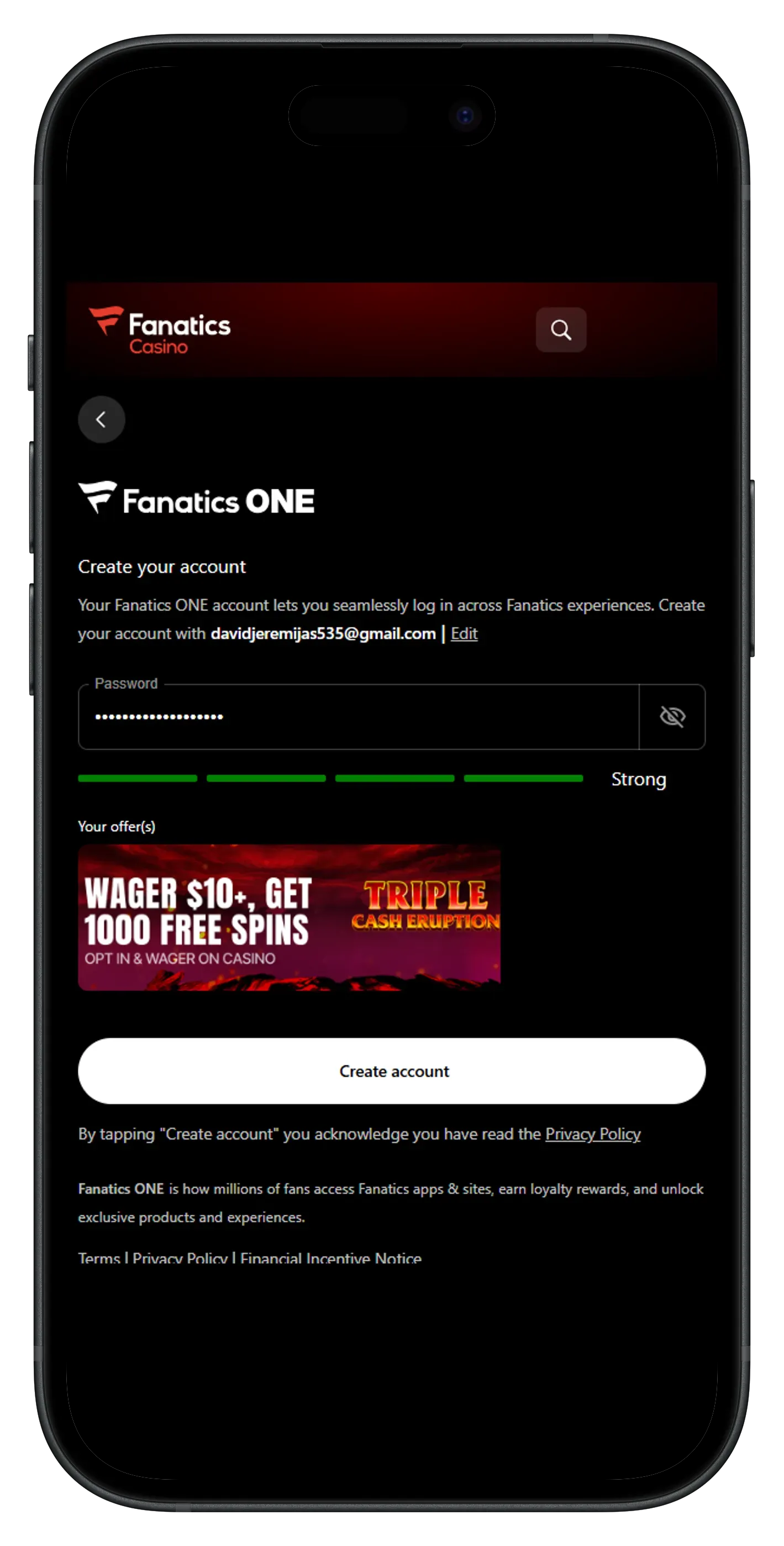 Pennsylvania players don’t need to enter a traditional casino promo code to activate the Fanatics Casino welcome offer. Everything is applied automatically once you follow the correct steps during registration.