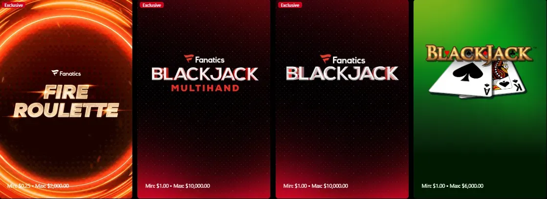 Table game fans will find all the casino staples at Fanatics, including blackjack, roulette, baccarat, and poker-style games available in multiple formats.