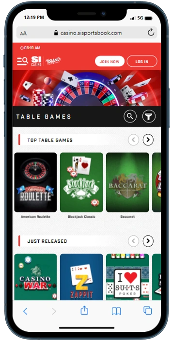 The SI App is identical to the desktop site with the same large selection of games. They’re divided into 14 categories and displayed on your home screen. The page appears crowded with too many categories competing for screen space. However, we couldn’t help but notice that the categories are clever and fun to scroll through. The display also has an interactive element. Players can drag an icon left or right to view the next in a group of games.