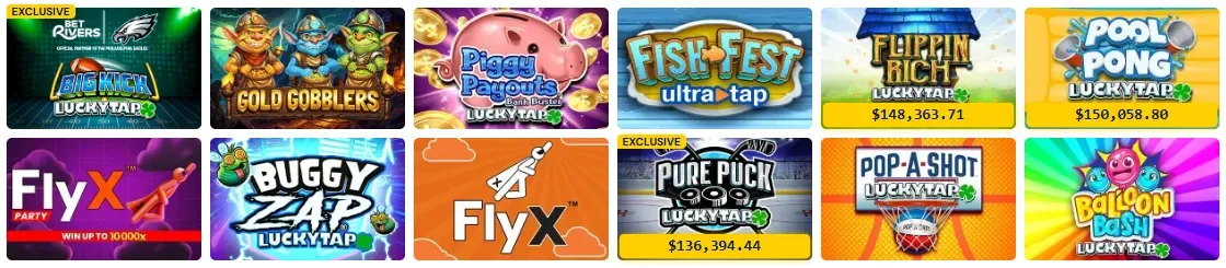 ๐ฒ Game Types Available | Slots, Table Games, Live Dealer Games, Arcade Games, Exclusives, Progressive Jackpots |