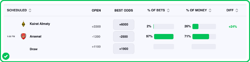 Check out the best soccer odds before making your Kairat vs Arsenal picks.