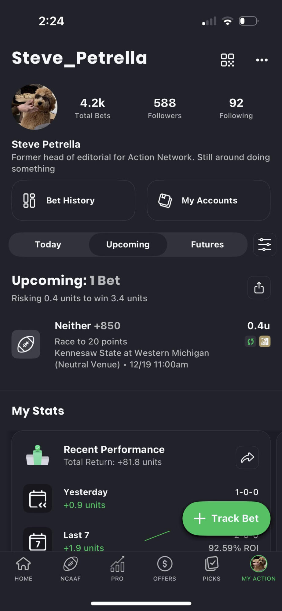 Tracking all your sports bets across a variety of books has always been a challenge. Then came The Action Network app, which made tracking and following your bets a breeze.
