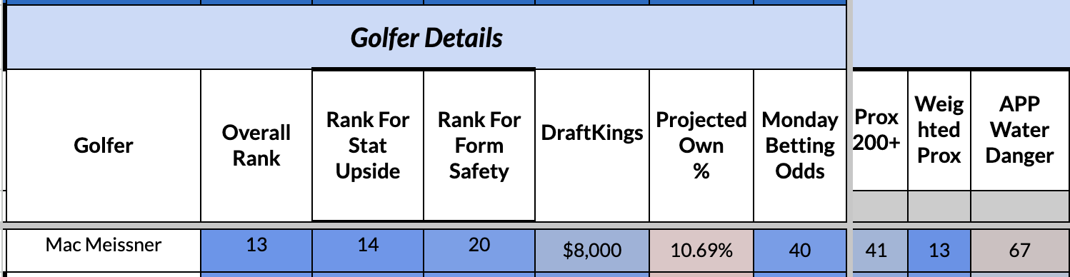 My hope is that Meissner's lack of returns at this track will land more under overall proximity this go-around than it does pure "water avoidance."