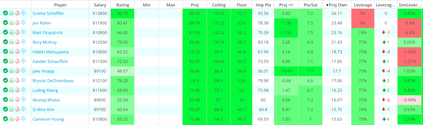 That will give you lineups with leverage. If you do take Scheffler, make sure the rest of your picks are unpopular so you can create a unique lineup. If you fade Scheffler, you can pick more popular players in other tiers.