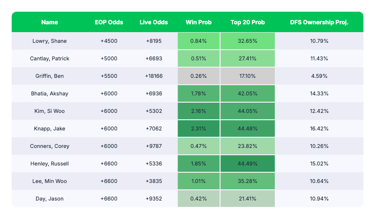 But if you can get a 2% Tyrell Hatton vs. an 18% Shane Lowry and their chances of finishing top 10 are basically the same, you should take Lowry.