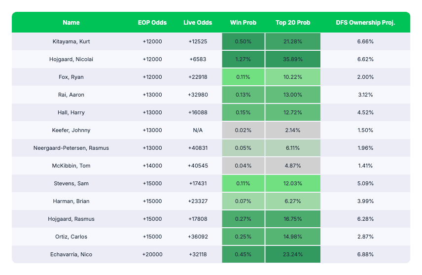 - Nicolai Hojgaard: We have him as a top 20 player in this field, but in this tier, he'll go way over-owned. With a different setup, he'd be much more interesting.