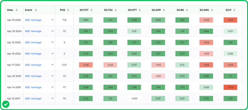 From a sheer course history perspective, Harman ranks eighth in the field in total strokes gained at Harbour Town (minimum 16 rounds). The Georgia native has a T3, T12 and T7 in the last three tournaments here.