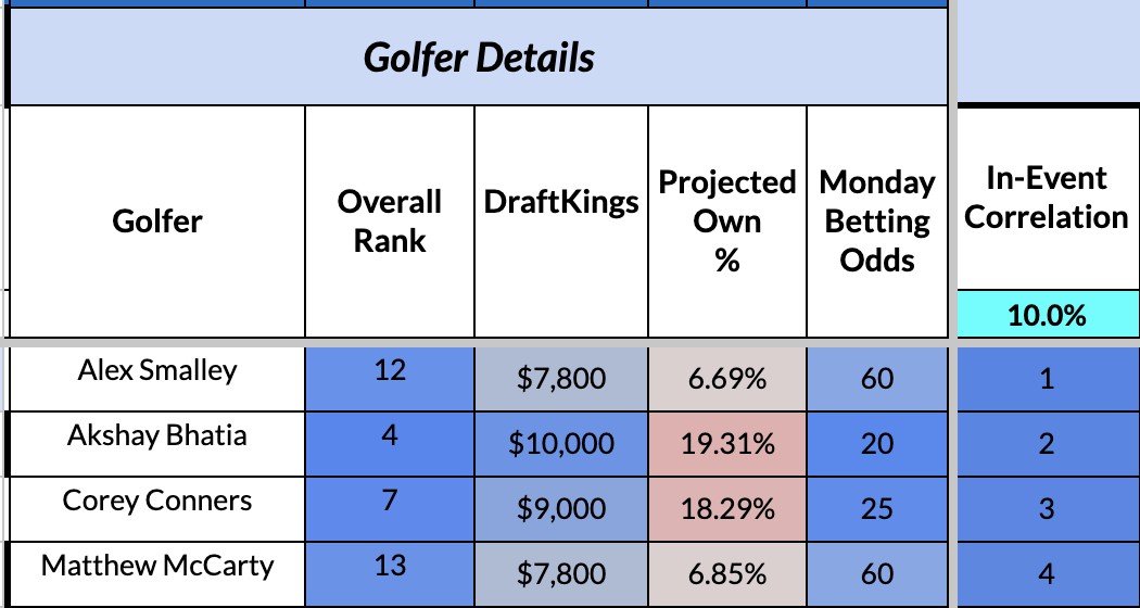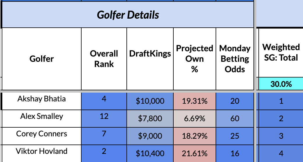 Smalley was a massive bright spot on my card last week across all iterations of the head-to-head market, and his output of top-30 grades for driving, approach, and correlated returns helped make him one of only five players to meet the threshold when running the data.