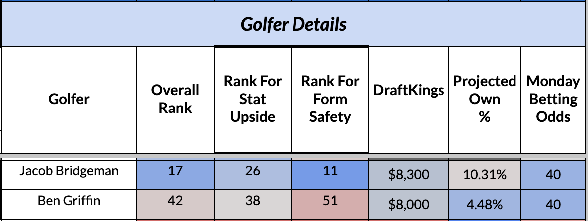 That said, it feels like we have two golfers trending in different directions. One side features Griffin still being treated as if this were 2025, while Bridgeman remains under-appreciated for the season he has had in 2026.