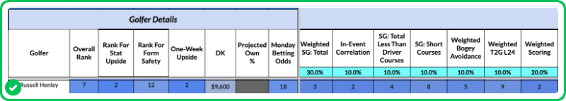 Still, upside is what we shoot for in the outright market, which makes Henley the perfect candidate to target if we're looking for a prototypical course fit who excels with his data.