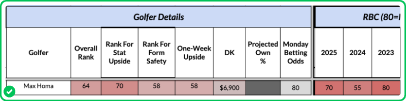 My model sees that factor when we dive into his multiple top-five statistical grades across the seven categories I ran, including second-place finishes in In-Event Correlation and Weighted Scoring.
