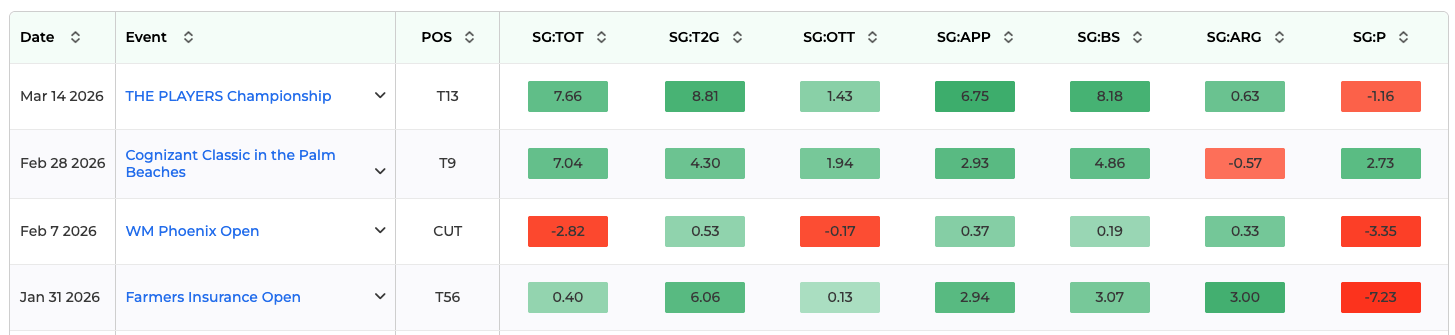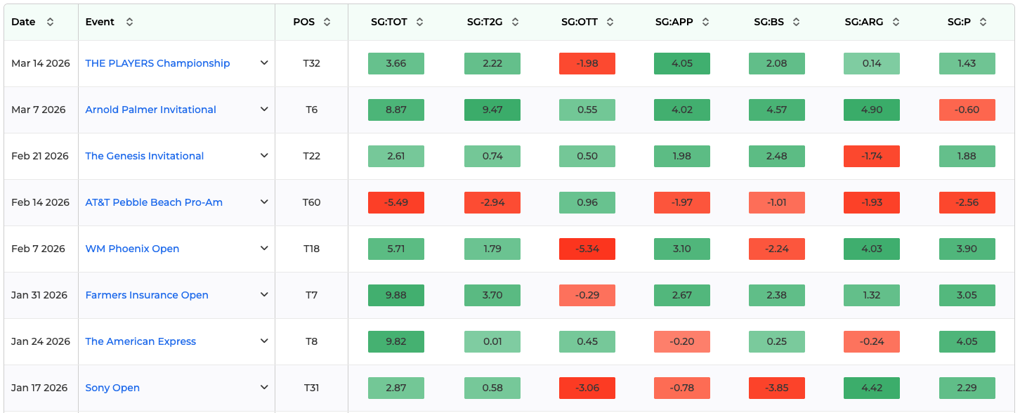 Granted he lost just over one stroke with the putter last week, he did gain just under three strokes at PGA National. Koepka thrives in these types of conditions, where scoring is difficult, and making par is a good score. He only has one start here, where he finished T12 in 2023. With a T13 and a T9 in his last two starts, I think a win is coming very soon for Koepka.