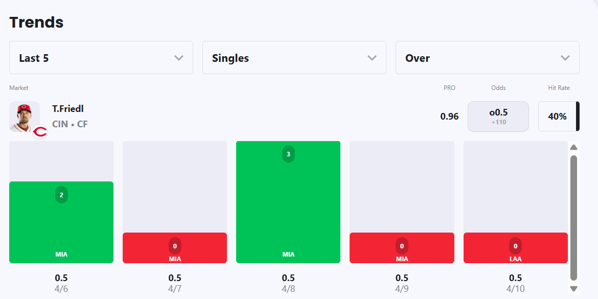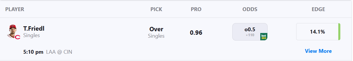 - Angels vs Reds Pick: TJ Friedl Over 0.5 Singles