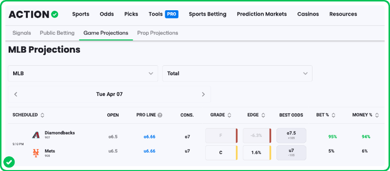 As a reminder, you can see all of Zerillo's MLB game projections with an Action PRO Subscription. Find his projected lines every day on the PRO Projections tab.