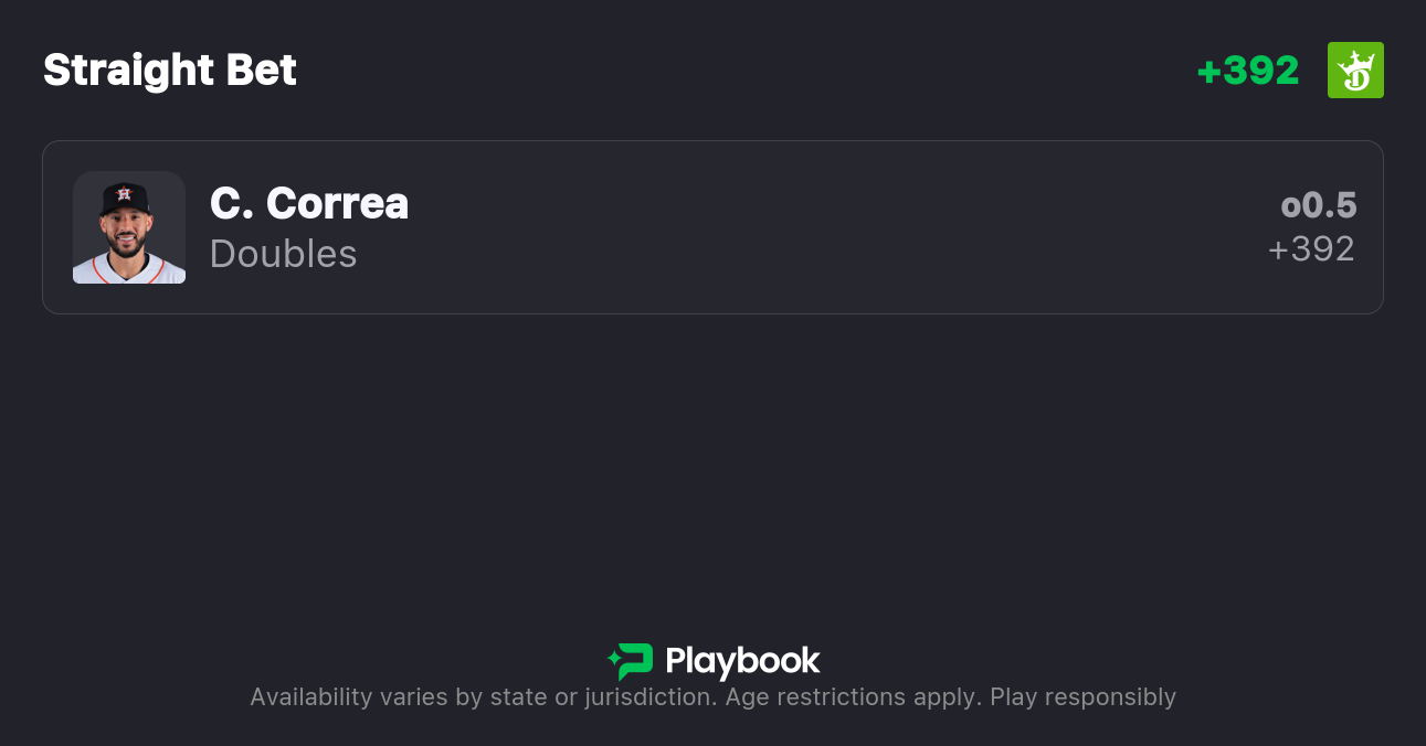 - Astros vs Orioles Pick: Carlos Correa Over 0.5 Doubles