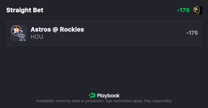My Astros vs Rockies best bet is on Houston to win. Make sure to find the best odds by checking our live MLB odds page.