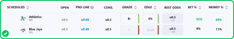 - Athletics vs Blue Jays Pick: Over 8.5 (-115)