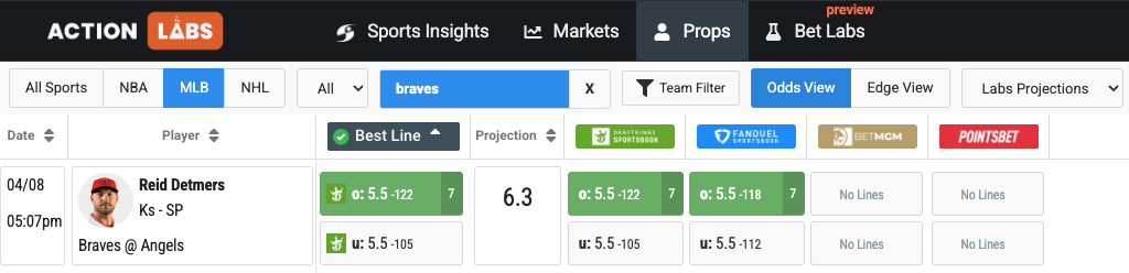 - Braves vs Angels Pick: Reid Detmers Over 5.5 Strikeouts