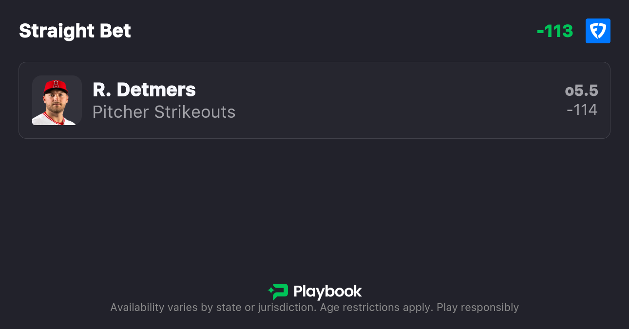 My Braves vs Angels best bet is on Detmers' strikeout prop. Make sure to find the best odds by checking our live MLB odds page.