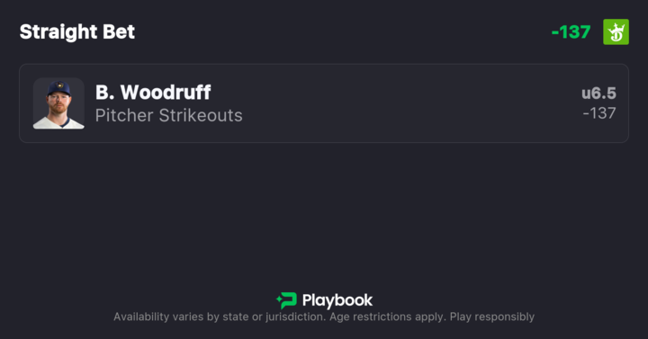 Pick: Brandon Woodruff Under 6.5 Strikeouts