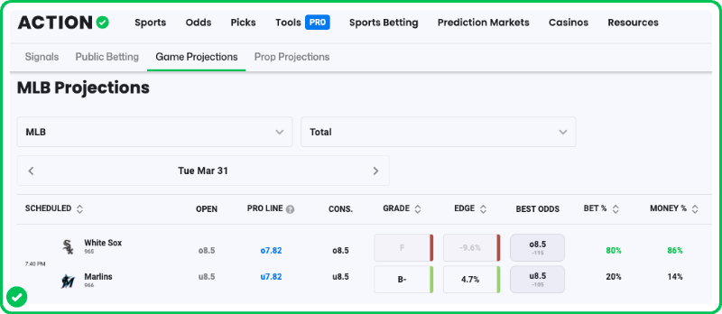 As a reminder, you can see all of Zerillo's MLB game projections with an Action PRO Subscription. Find his projected lines every day on the PRO Projections tab.
