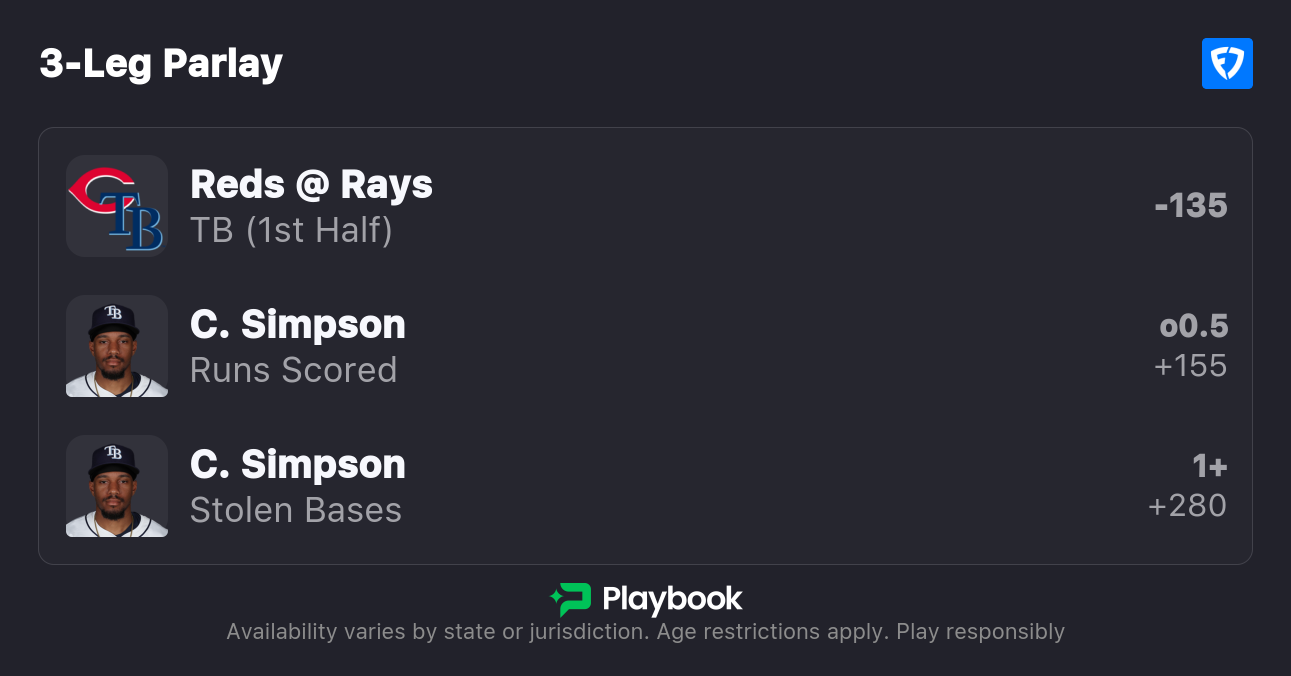 - Reds vs Rays moneyline: Reds +108, Rays -126