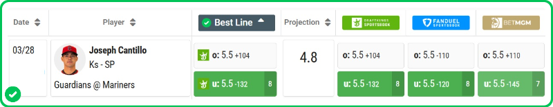 - Guardians vs Mariners Pick: Joey Cantillo Under 5.5 Strikeouts (-120)