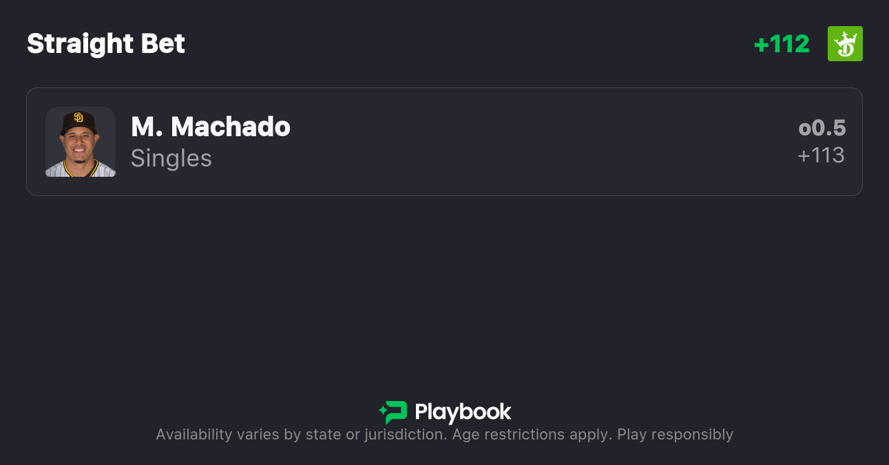 Pick: Manny Machado 1+ Singles (+113, DraftKings)