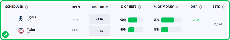 - Tigers vs Twins Pick: Tigers ML (-134)