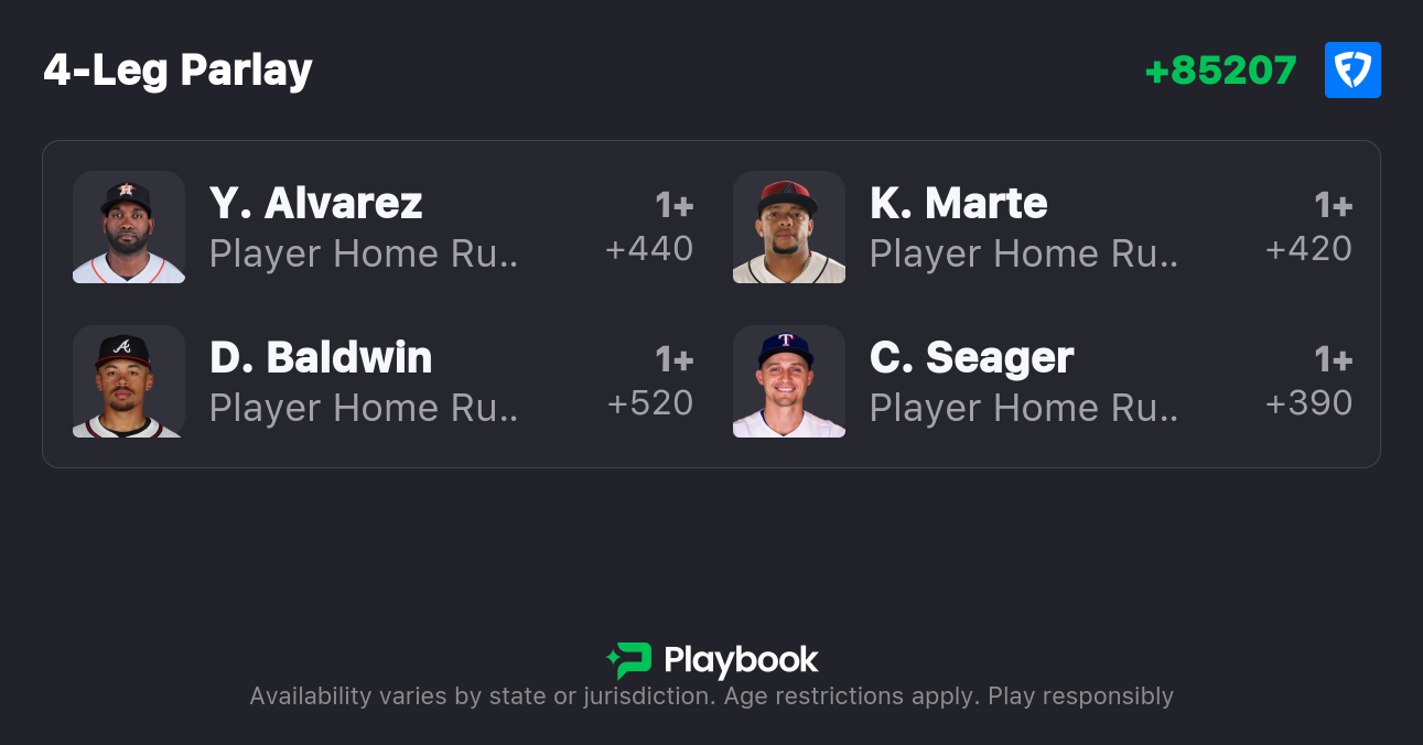 Editor's Note: A home run parlay is not the author's formal recommendation. These home run picks have value as straight bets.