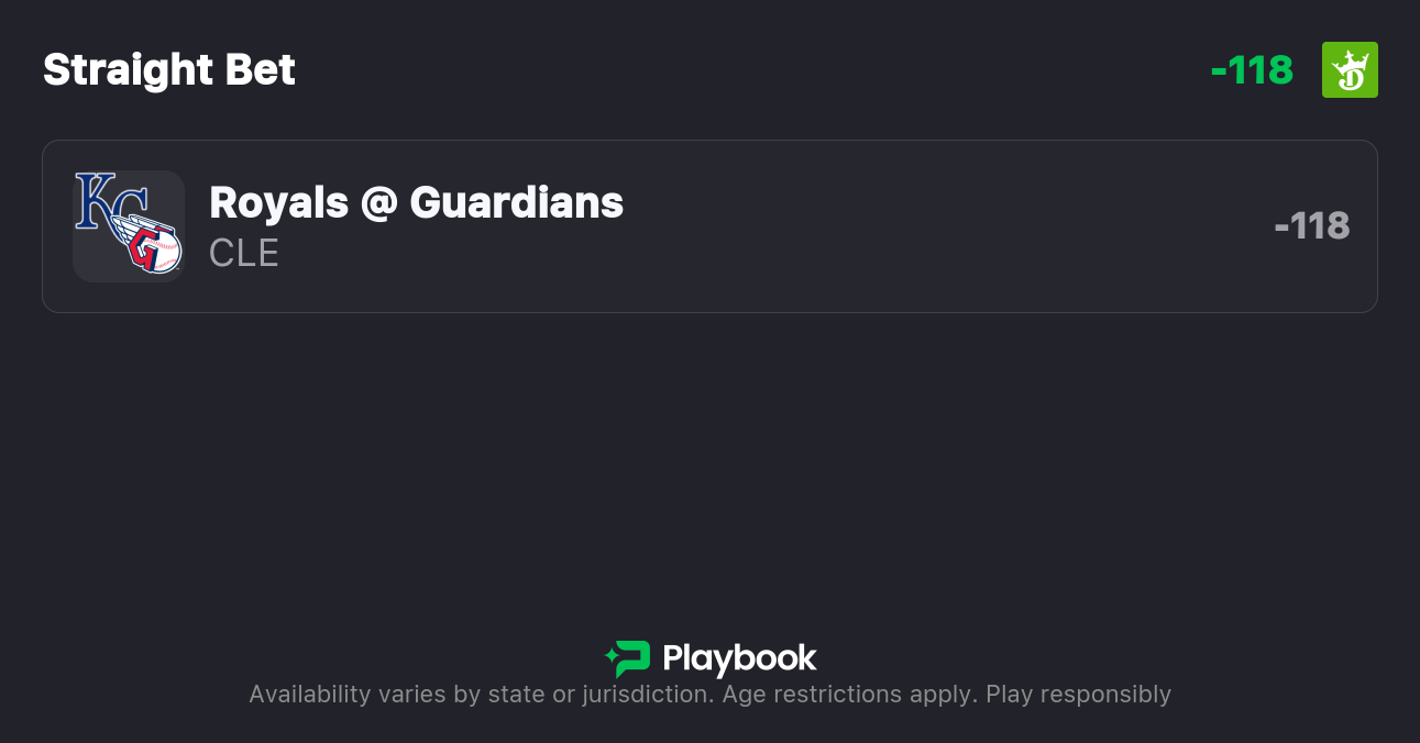 - Royals vs Guardians Pick: Guardians -115 or better