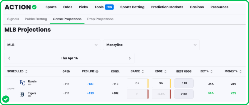 As a reminder, you can see all of Zerillo's MLB game projections with an Action PRO Subscription. Find his projected lines every day on the PRO Projections tab.
