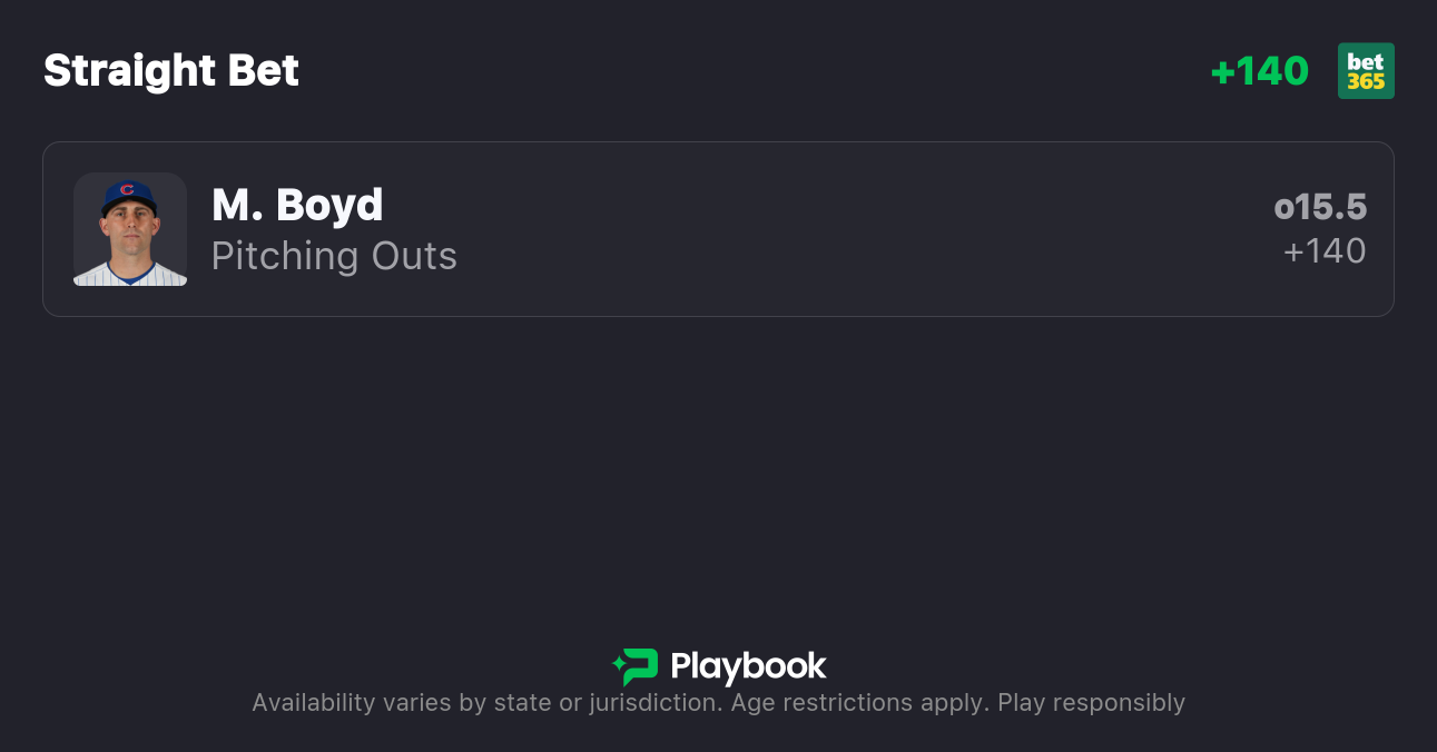 - Angels vs Cubs Pick: Matthew Boyd Over 15.5 Outs (+140, bet365)
