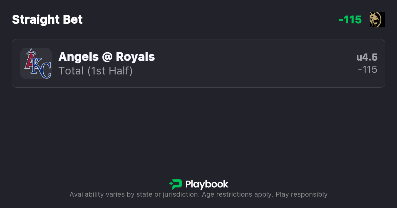 - Angels vs Royals Pick: F5 Under 4.5 (-115)