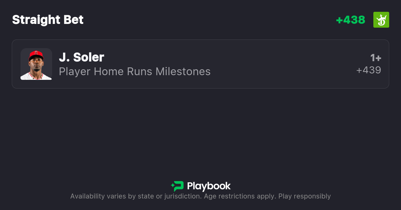 - Angels vs Yankees Pick: Jorge Soler Home Run (+439)