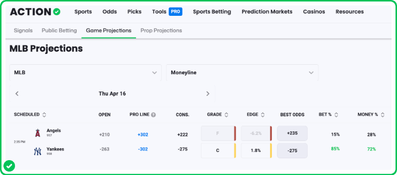 As a reminder, you can see all of Zerillo's MLB game projections with an Action PRO Subscription. Find his projected lines every day on the PRO Projections tab.