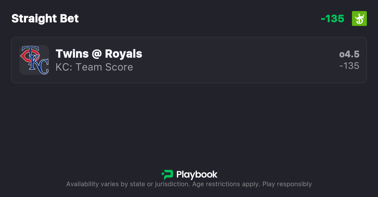 - Twins vs Royals Pick: Royals Team Total Over 4.5