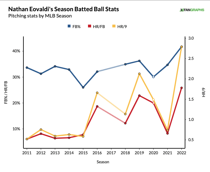 If anything, Eovaldi's 2021 campaign (0.74 HR/9, 8.2% HR/FB) looks like an outlier.