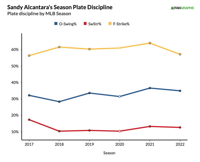 His swinging-strike rate and CSW% stand at career-lows too. The two positives are career-best marks in chase rate and first-pitch strike rate.