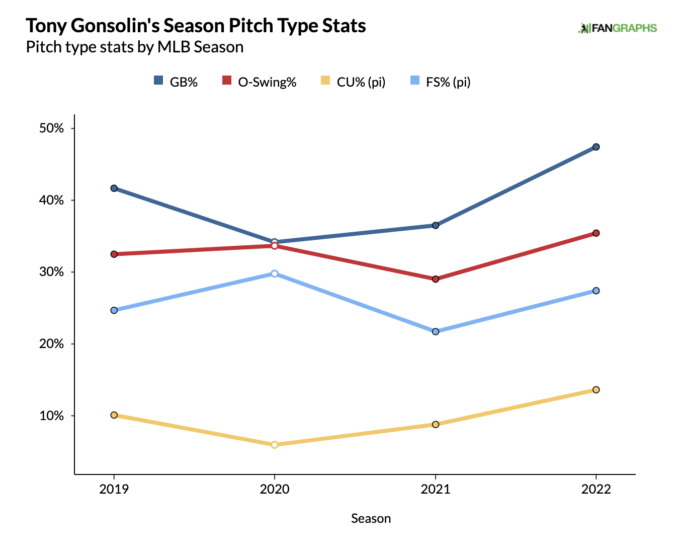 Similarly, Gonsolin has pitched to a sub 2 ERA while modifying his pitch mix – decreasing his fastball usage by 10 percent and reallocating to his curveball and splitter.