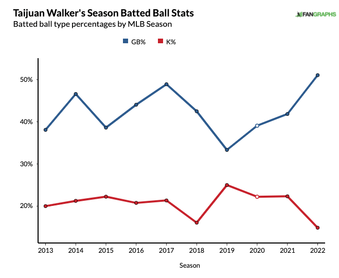 While his strikeout rate has plummeted, Walker has seen a substantial increase in groundball rate: