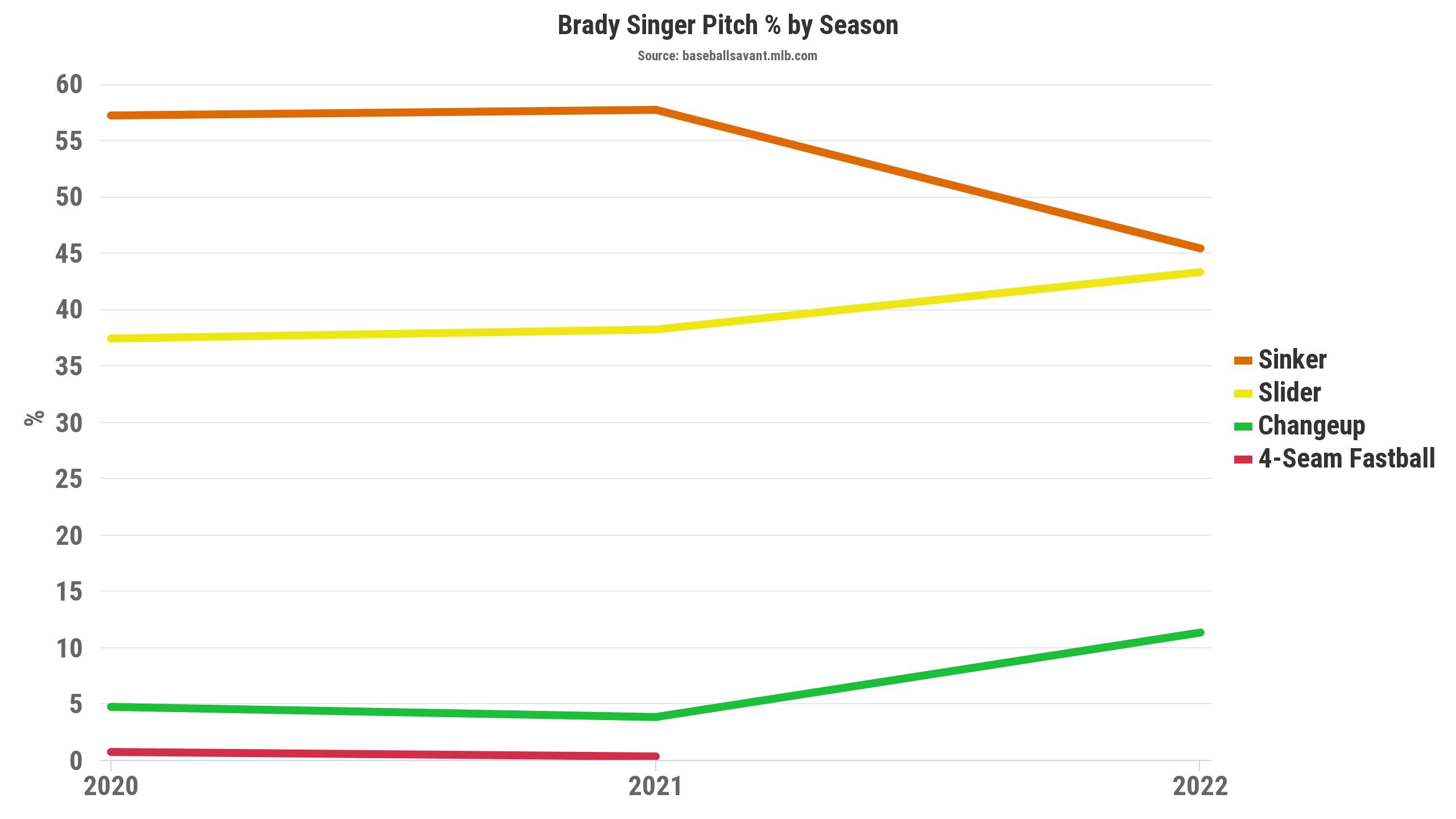 In a limited sample, Brady Singer has taken a step forward this season, showing career-best marks in swinging-strike rate, called-strike plus whiff rate (CSW%) and chase rate.
