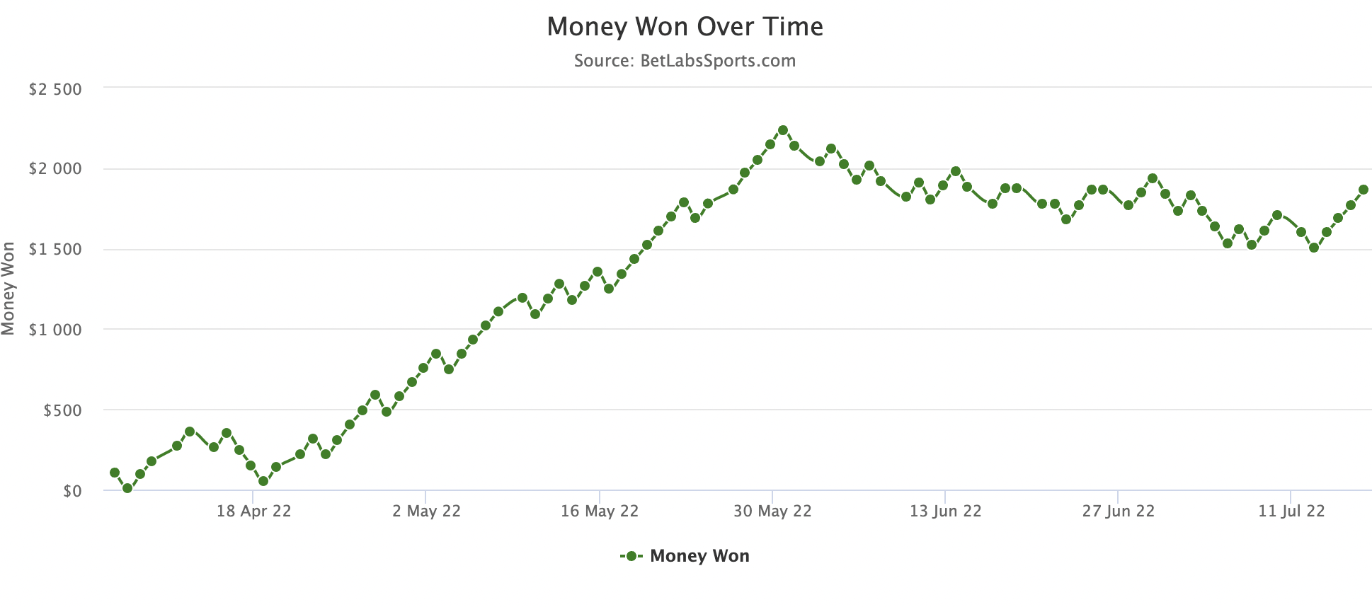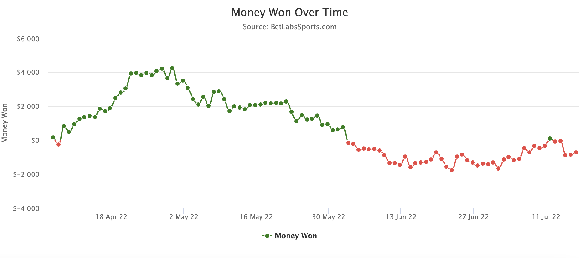 However, I do know that unders were hot to start 2022. If you had bet every single MLB under between Opening Day (April 7th) and April 30th, you would’ve gone 181-123-13 for 42.5 units of profit.
