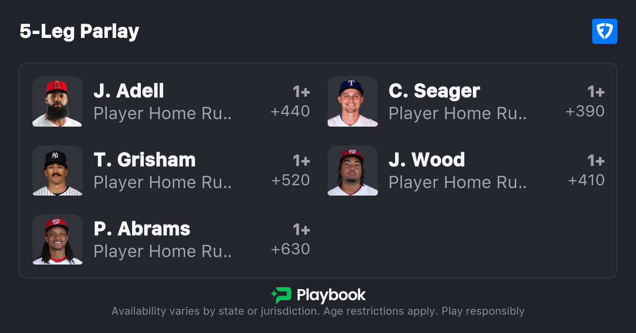 Editor's Note: A home run parlay is not the author's formal recommendation. These home run picks have value as straight bets.