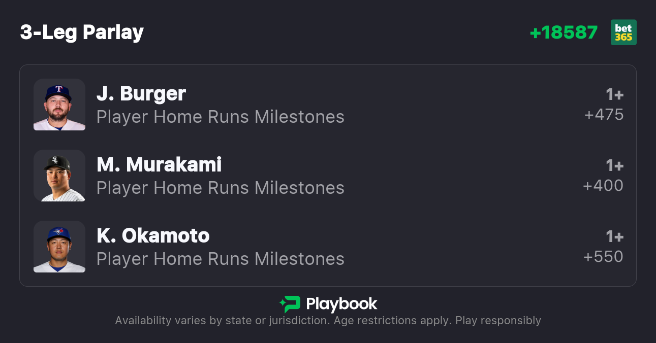 I've got three MLB Home Run Props and home-run picks, including picks for Rangers vs Orioles, White Sox vs Marlins, and Rockies vs Blue Jays.