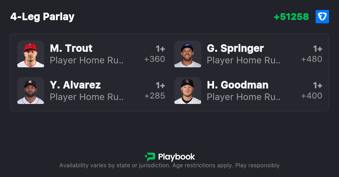 Editor's Note: A home run parlay is not the author's formal recommendation. These home run picks have value as straight bets.